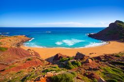 Minorca is bisected by the road that crosses it. In the south, a huge plain opens onto sandy bays encircled with pine trees. Cala Macaerella and Cala Mitjana are just two examples of these small coves of transparent water. In the north, El Toro, a compact range of mountains gives a panoramic view across the spectacular countryside. Here, the raging wind has left its mark. Walkers paths lined with twisted trees give way to red sand beaches, such as Pilar and Cala Cavalleira. In Favaritx and elsewhere, vertiginous cliffs open onto marine reserves (such as S’Albufera d’Es Grau) where sea life abounds.